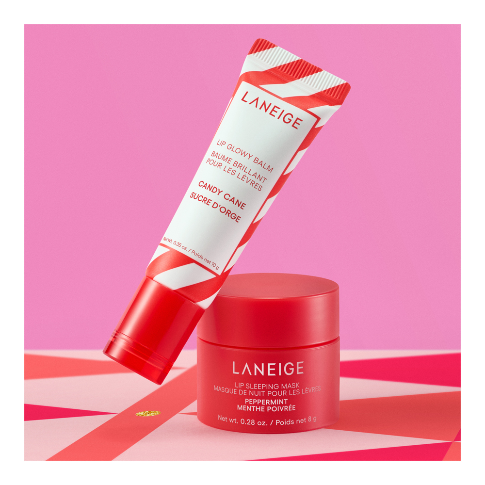 Laneige Lip Glowy Balm (Candy Cane) Apply generously to lips as needed throughout the day for continuous hydration and a subtle, glossy tint.