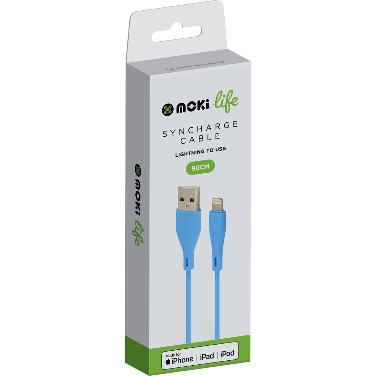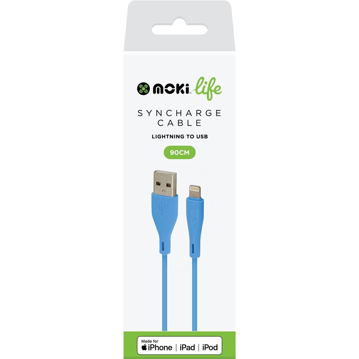 Moki Life 90cm Syncharge Cable Lightning to USB Blue each