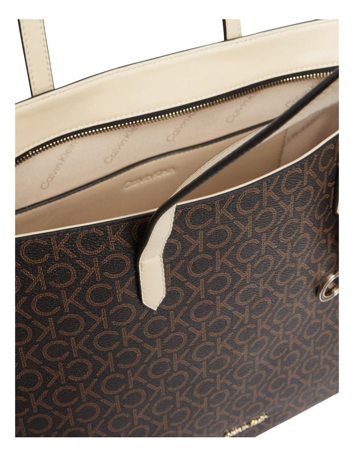 A faux leather tote with a recycled plastic bottle lining. Features non-adjustable shoulder straps, a zip-top fastening and an interior pocket.  Pebble-textured faux leather exterior. Non-adjustable shoulder straps. Zip top fastening.