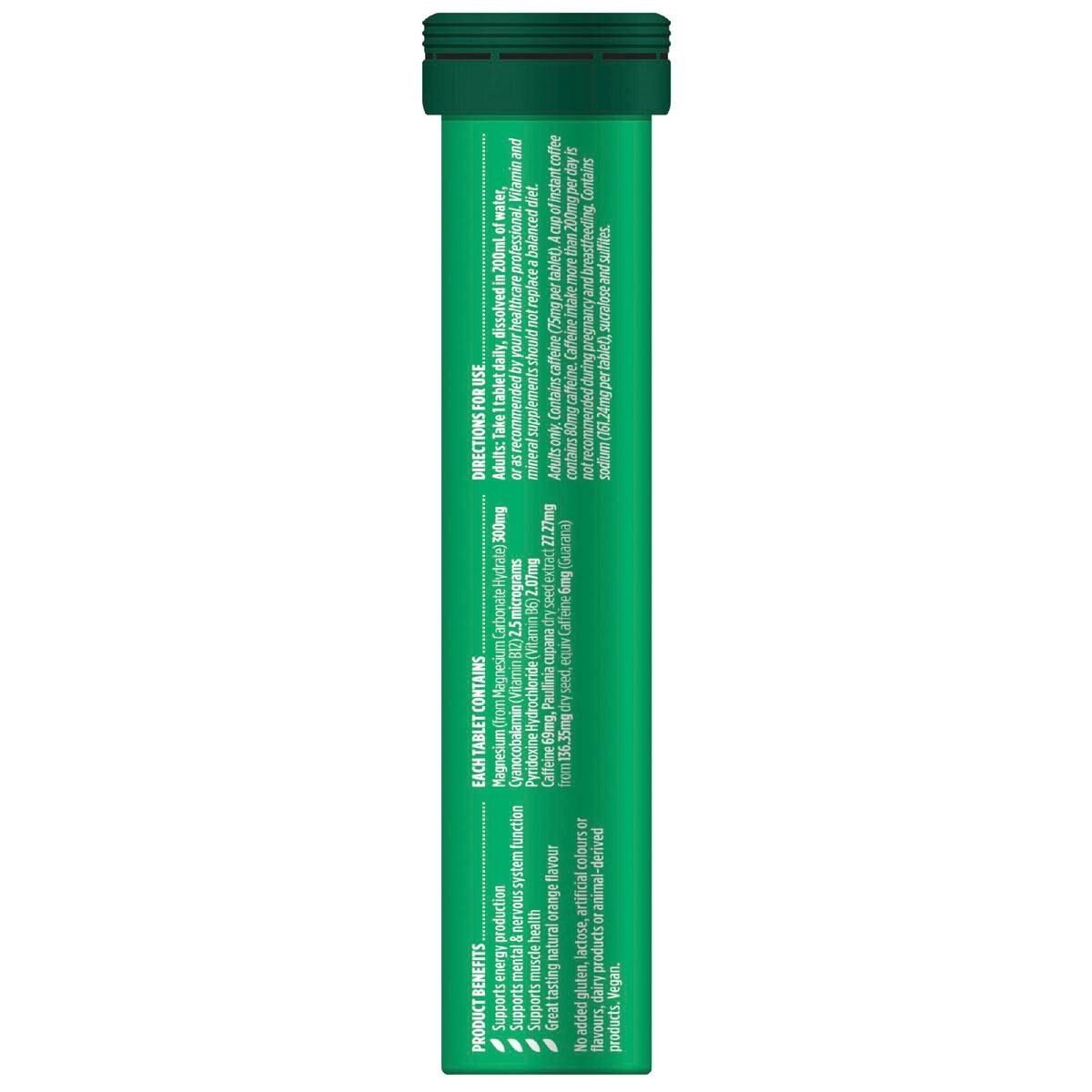 Great tasting effervescent to support energy production and mental function.Support your body's energy production and mental function with Nature’s Own Magnesium + Energy Tablets. Each tablet contains a blend of Magnesium, Vitamin B6, Vitamin B12, Caffeine *, and Paullinia cupana dry seed extract. Magnesium + Energy supports energy production, as well supports healthy mental and nervous system function. This 1-a-day Magnesium,  B Vitamin, Guarana and caffeine supplement also supports healthy immune system function, and maintains muscle health. Australian Made® and rigorously tested to ensure quality, potency, and purity, Nature’s Own High Strength Magnesium tablets contain no added gluten, lactose, artificial colours or flavours, dairy products or animal derived products *. Adults take one tablet once daily dissolved in 200mL of water, or as directed by your healthcare professional, for an effervescent, natural orange-flavoured drink that tastes great. Always read the label and follow the directions for use. * Adults only. Contains caffeine (75mg per tablet). A cup of instant coffee contains 80mg caffeine. Caffeine intake more than 200mg per day is not recommended during pregnancy and breastfeeding. Contains sodium (161.24mg per tablet), sucralose and sulfites. Vitamin and mineral supplements should not replace a balanced diet.SUPPORTS ENERGY PRODUCTION: Contains Vitamin B6 to support energy production in the bodyMENTAL & NERVOUS SYSTEM FUNCTION: Taken as directed, Nature’s Own Magnesium + Energy helps maintain mental and nervous system function, as well as supports healthy immune system functionMAINTAINS MUSCLE HEALTH: This 1-a-day supplement helps support muscle health1-A-DAY DOSE: Adults: Dissolve 1 tablet once daily in 200ml of water, or as directed by your healthcare professional, for an effervescent, natural orange-flavoured drink that tastes greatVegan-friendly formula contains no added gluten, lactose, artificial colours or flavours, dairy products or animal-derived products **Always read the label and follow the directions for use. See product warnings below