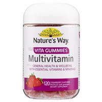General Information Nature's Way Adult Vita Gummies Multivitamin supports general health & wellbeing with essential vitamins and minerals. Nature’s Way Adult Vita Gummies Multivitamin is formulated with 11 vitamins and minerals to help support: immune system health, energy production, heart health, nervous system function, healthy teeth and strong bones. This product also supports skin and hair health, nail strength and collagen formation. Best of all the great tasting strawberry flavoured gummies are so easy to take – no water and no swallowing difficult tablets. Suitable For: Adults Boxed Contents: 120 Pastilles Size: 120 Pastilles