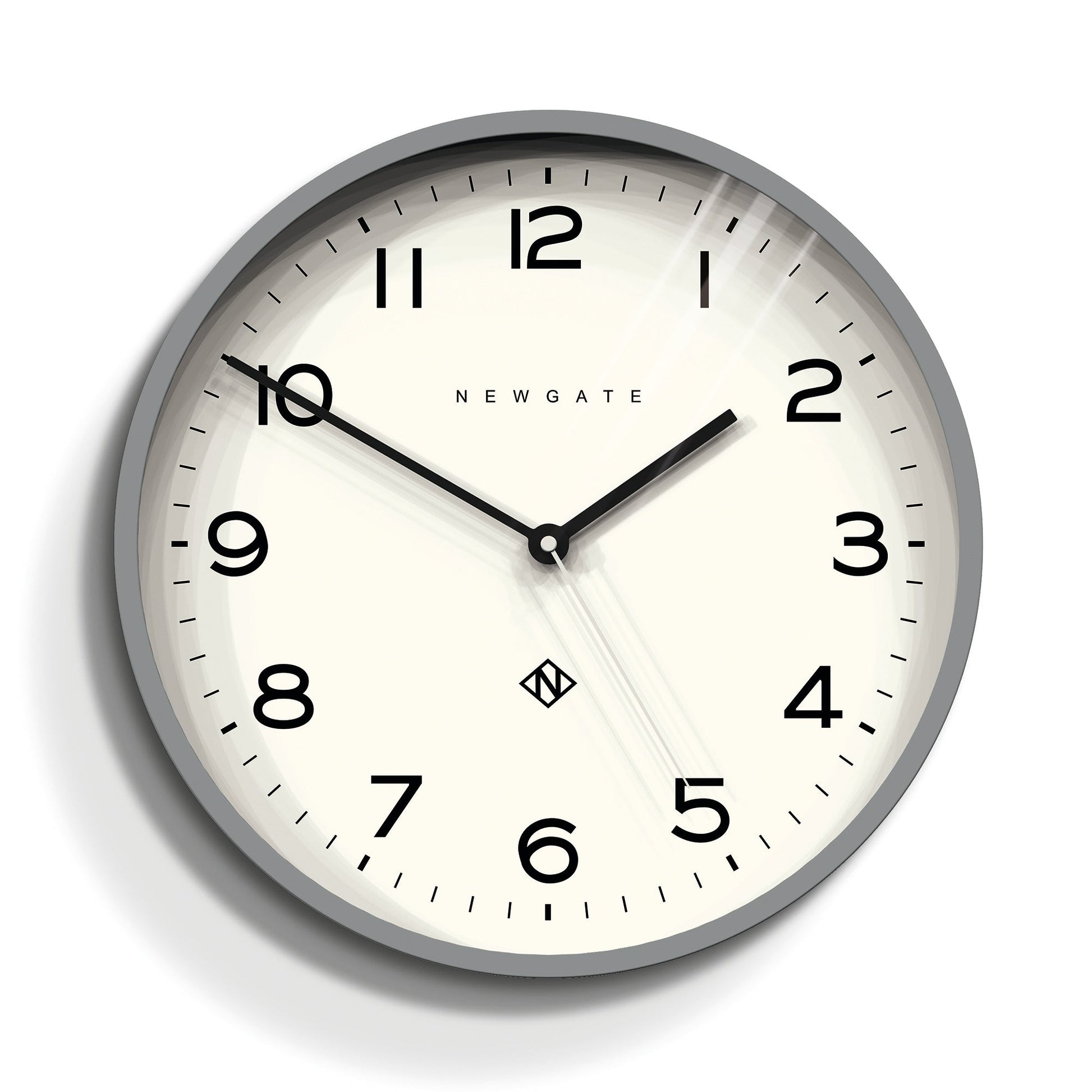 Newgate Number Three Echo Clock Silicone Grey A modern grey wall clock with a minimalist graphic dial and a contemporary straight-cut case. - Material: Acrylic, Paper, Metal Hands, Glass- Colour: Silicone Grey- Movement: Quartz. This is a ticking clock.- Power: 1 x AA (not included)- Dimensions: LWH 4.5 x 37.5 x 37.5cm; 1.03kg