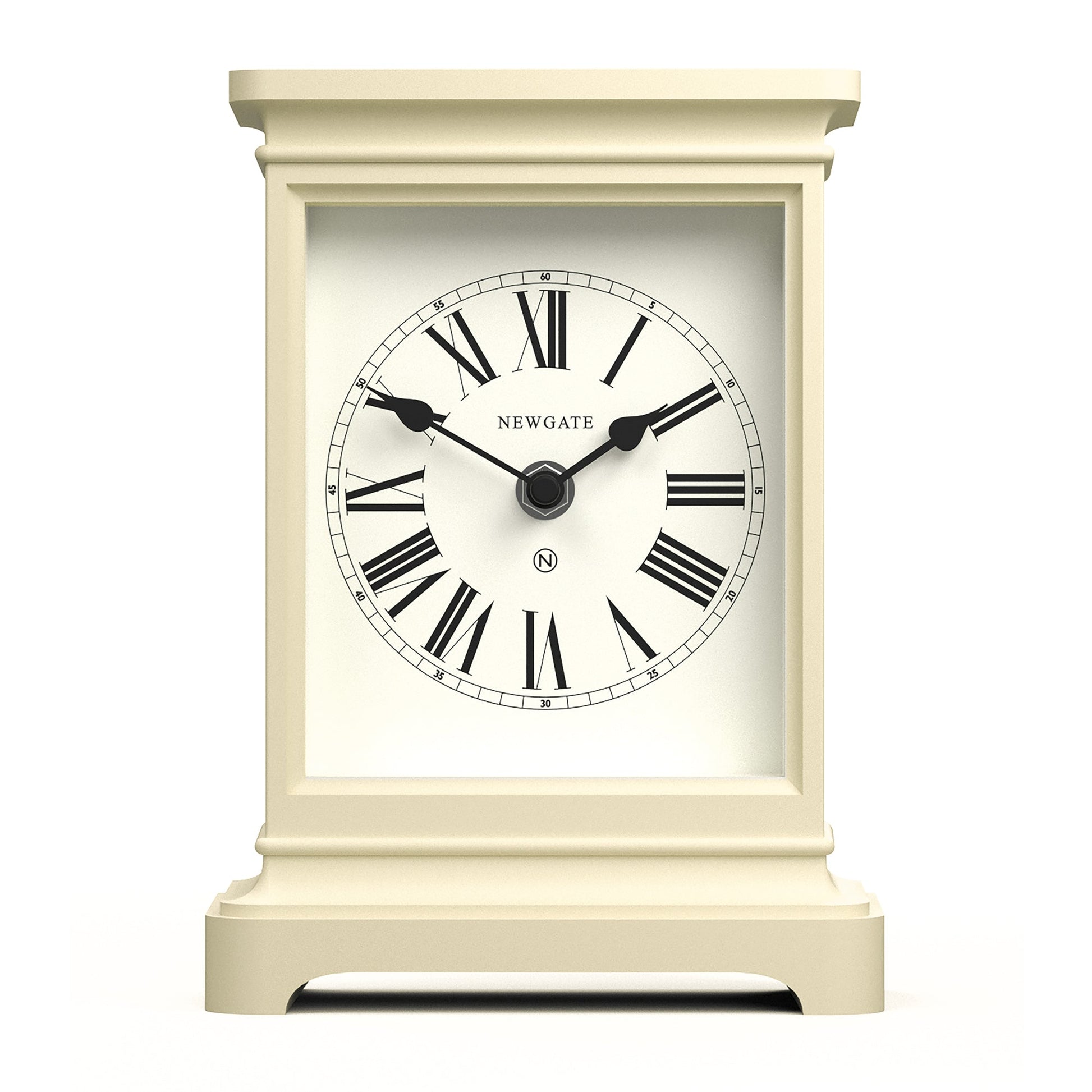 Newgate Time Lord Mantel Clock Matte Linen White A classic linen white mantel clock with a roman numeral dial, in a lightweight precision, engineered acrylic case.Known as ‘silent sweep’ in the industry, the hands move in a constant sweeping motion rather than a stepped tick. So you won’t hear any ticking but if your hearing is particularly sensitive in a completely silent room you may hear a very quiet whirring.- Size: HWD 21.9 x 14.3 x 8 cm; 0.43kg- Materials: Acrylic, Metal Hands, Glass- Colour: Matt Linen White- Movement: Quartz ‘Silent Sweep’- Power: Requires 1 x high quality branded alkaline AA battery (not included)