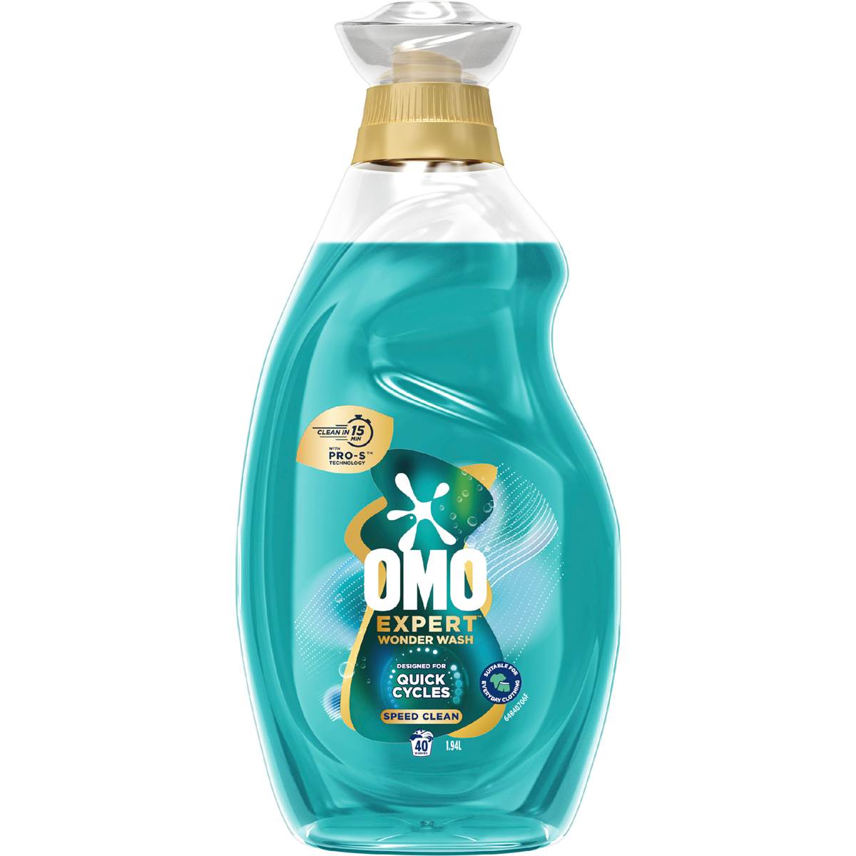 OMO QUICKWASH LAUNDRY LIQUID SPEED CLEAN 1.94 LTROMO Expert Wonder Wash Speed Clean is specially designed to work wonders in a quick cycle even in 15 minutes! Thanks to our unique Pro-S technology, it lifts away invisible dirt leaving your clothes wonderfully fresh. Suitable for everyday clothing that needs a quick refresh, and with an extraordinary fragrance, your laundry will smell amazing every time.\\Our laundry detergent is suitable for all colours and washing machine types (both front and top loader). For great results, add 48 ml of the liquid detergent to your machine. Wonder wash has been formulated to work in quick and cold wash cycles but will work at any temperature. Always follow the care label on clothes.\\OMO believes that real change happens when we roll up our sleeves and get dirty. We all want a cleaner future for our world. That's why OMO is changing. We're delivering a clean you can trust in the most sustainable way we can. Visit the OMO website to find out how we're getting dirty for a cleaner future and how you can join us too. Get dirty for good.OMO Expert Wonder Wash Speed Clean laundry liquid is designed for quick & cold cycles even in 15 minutesWith Unique Pro-S Technology this laundry detergent lifts invisible dirt in 15 minutesLeaves your clothes with an extraordinary fragranceSuitable for everyday clothingOMO's laundry detergent has been awarded Reader's Digest's Most Trusted Brand for ten consecutive years.