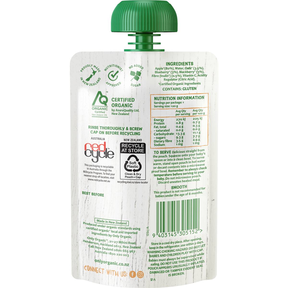 Only Organic Apple Blueberry Blackberry & Oats 120g