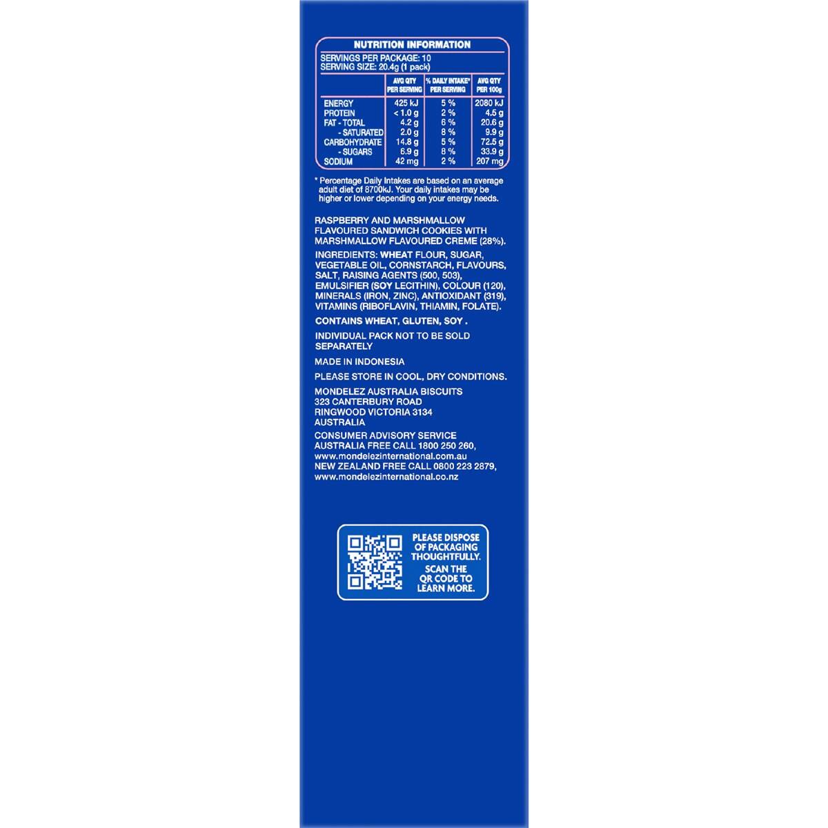 Enjoy the deliciously sweet Pascall Marshmallow inspired OREO Mini's in this convenient 204g 10 pack.OREO Mini Sandwich Biscuits inspired by Pascall Marshmallows are the same OREO cookies you know and love, just mini.Delightfully combining delicious pink OREO biscuits with a delicious Pascall Marshmallow inspired creme. OREO mini's inspired by Pascall Marshmallows are the perfect on the go snack! These mini sweet creme munchable biscuits are the perfect size for sharing with family and friends. Whether you need sweet biscuits for baking ingredients, ice cream decorations or delicious birthday party treats - OREO Minis are the perfect snack to share. Enjoy with your cup of tea, coffee or glass of milk - OREO Mini's are the playful biscuit to pair with your drink of choice!OREO Mini Sandwich Biscuits inspired by Pascall Marshmallows, 10 pack 204gMunchable pink OREO cookies with a smooth Pascall Marshmallow inspired cremeEach 204g box of OREO Minis contains 10 portion packs of delcious sweet biscuits.Elevate your baking by decorating your favourite desserts with these miniature OREO CookiesThese playful mini OREO biscuits are the perfect solution for snacking at home, in the office, or on the goEnjoy the taste of OREO Mini cookies with your favorite person or serve them at your next party or social gathering