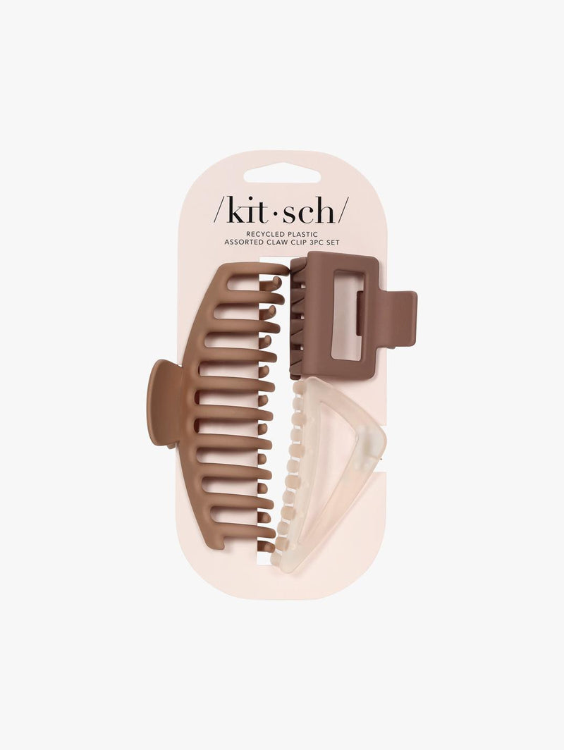 The oversized clip for twisting up and securing long, thick hair all day, The medium sized claw clip for an easy full or half-up style, and a small open-shaped claw clip for clipping back layers and adding some flair to your everyday look.