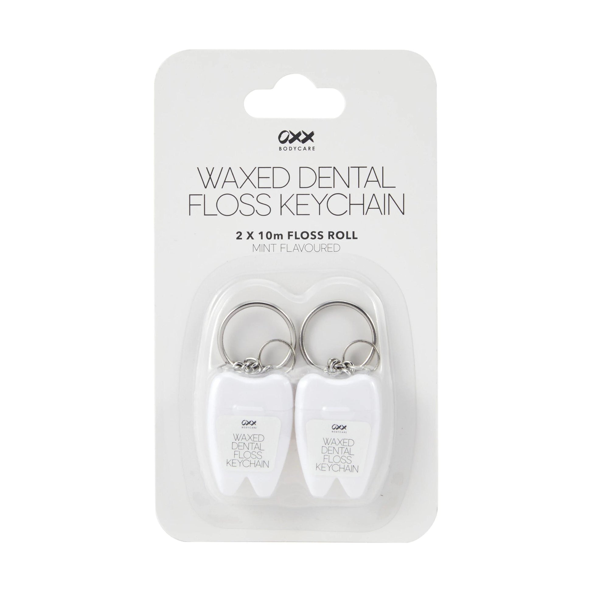 Freshen up on the go with these OXX Bodycare 2 Pack Waxed Dental Floss Keychains. This mint-flavoured keychain offers convenient, compact flossing with a smooth waxed finish - perfect for pockets, purses or travel kits.