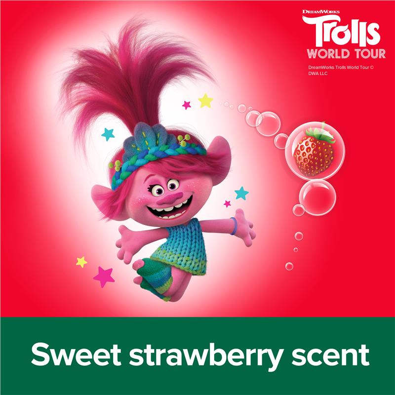 New look, same great formula. With a sweet Strawberry scent that smells so great you'll want to sing, dance and hug all day just like a Pop Troll!
