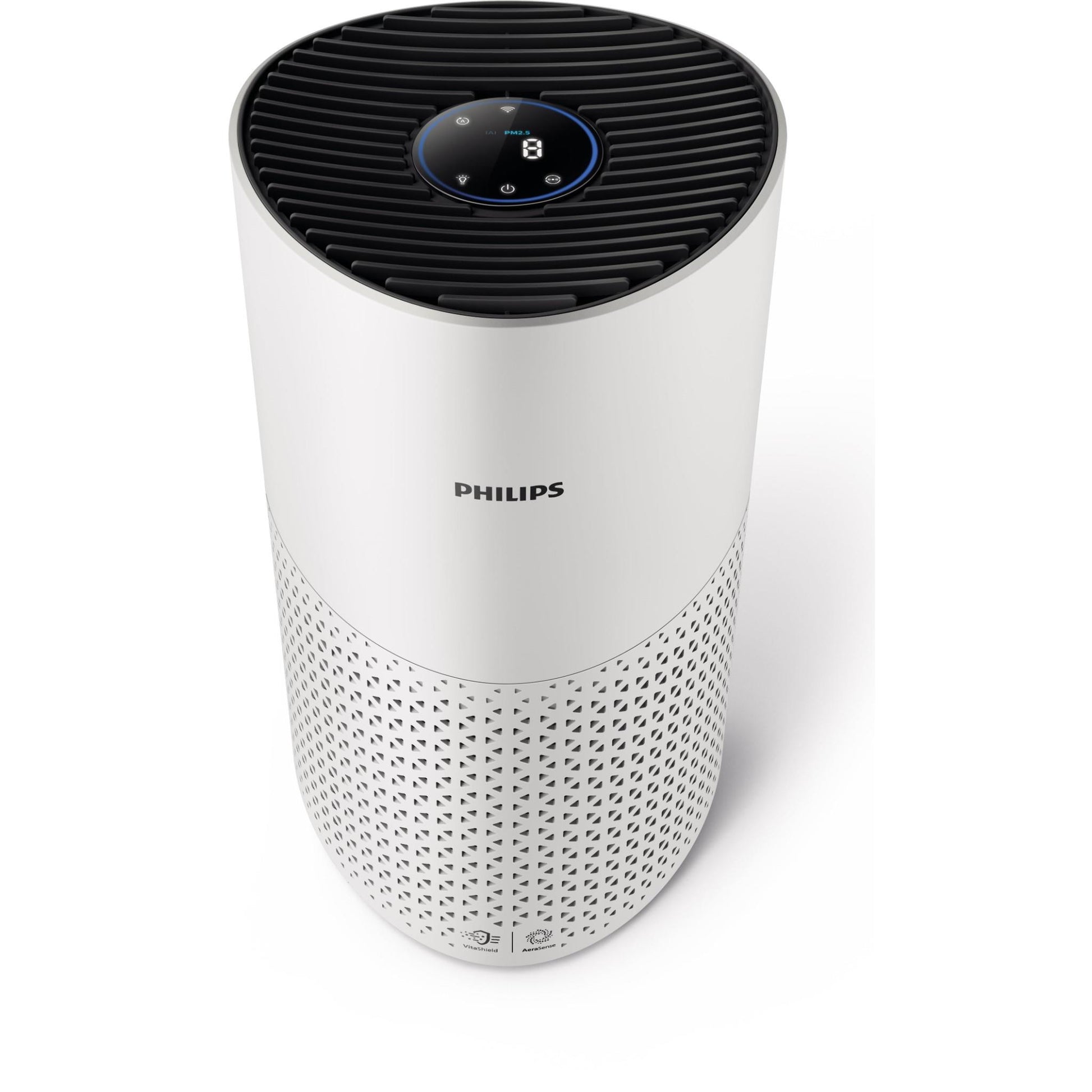 Connected with CleanHome+ app(1)From the air that passed through the filter, it is a theoretical time for one-time cleaning calculated by dividing the room size of 48m³ by CADR 300m³/h (assuming the room is 20m² in floor area and 2,4 m in height).(2)Microbial Reduction Rate Test conducted at Airmid Health group Ltd. tested in a 28.5m³ test chamber contaminated with airborne influenza A(H1N1), in Turbo mode after 10-20 mins. An air purifier by itself does not protect against Covid-19, but can be part of the plan to protect yourself and your family (US Environmental Protection Agency)(3)From the air that passes through the filter. Tested with NaCl aerosol by iUTA according to DIN71460-1(4)From the air that passes through the filter, tested with birch pollen dust on filter media according to SOP 350.003 of the Austrian OFI institute(5)NanoProtect HEPA filter material provides lower air flow resistance than the material from a HEPA H13 filter, enabling a Philips air purifier with NanoProtect to deliver a higher Clean Air Delivery Rate (CADR) than with an equivalently-sized certified HEPA H13 filter (Test conducted by Philips Mar 2016).(6)From the air that passes through the filter, tested with NaCl aerosol by iUTA according to DIN71460-1. Supporting literature for the size of Coronaviruses have a size of approx. 0.08 - 0.22 micron :MacLachlan, Dubovi, Fenner's Veterinary Virology (5th Ed.), Academic Press, 2017, Ch. 24 Pages 435-461(7)Microbial Reduction Rate Test at external lab, in a test chamber contaminated with human coronavirus (HCoV-229E) aerosols, with Philips HEPA NanoProtect filter.(8)Recommended lifetime is calculated based on the Philips users’ average usage time and the WHO urban outdoor pollution level data. Actual lifetime is impacted by usage environments and frequencies.(9)Alexa and Google Home availability depends on your location