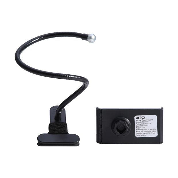 Product DetailsDimensions/Size:Product dimensions: 53.4cm (L) x 7.7cm (H) x 11cm (W)Clip opening width: 5cmFeaturesTablet and phone holder fits tablets up to 10-inch screen size50cm long sturdy flexible neck to position your deviceWarrantyManufacturer warranty: 12 months
