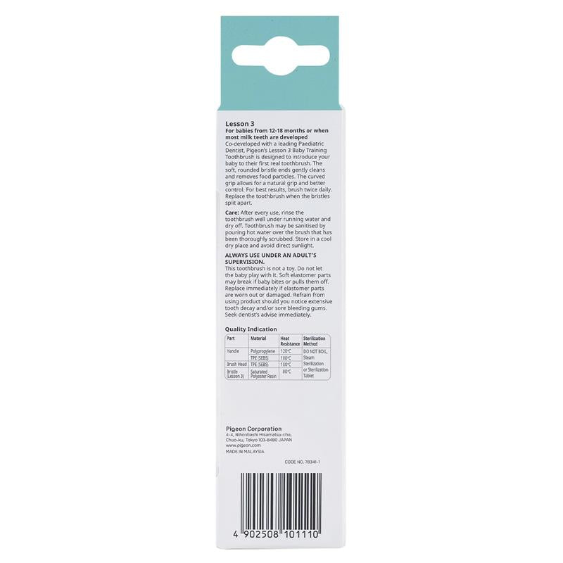 This toothbrush is not a toy. Do not let the baby play with it. Soft elastomer parts may break if baby bites or pulls them off. Replace immediately if elastomer parts are worn out or damaged. Refrain from using product should you notice extensive tooth decay and/or sore bleeding gums, and seek dentist's advice. ALWAYS USE UNDER ADULT SUPERVISION.
