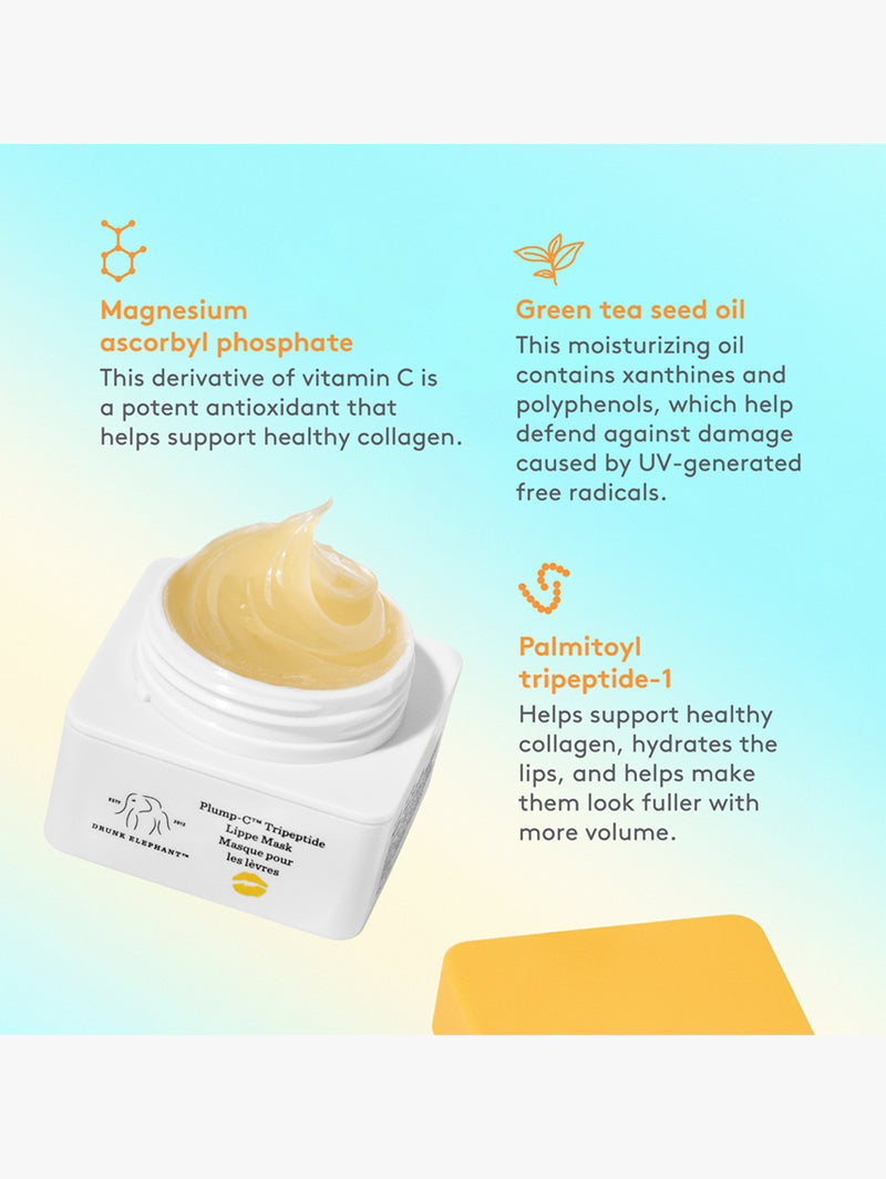 Palmitoyl Tripeptide-1: Helps support healthy collagen, hydrates the lips, and helps make them look fuller with more volume.. Magnesium Ascorbyl Phosphate: This derivative of Vitamin C is a potent antioxidant that helps support healthy collagen.. Green Tea Seed Oil: Rich in fatty acids, which are known to be moisturising, this oil also contains powerful antioxidant xanthines and polyphenols, which help defend skin against damage caused by UV-generated free radicals.