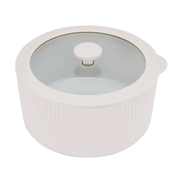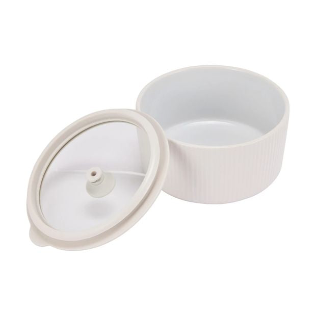 The versatile and elegant 800ml Porcelain Container with Glass Lid by Anko is your new kitchen ally. Perfect for storing a variety-fresh food, and more. Its ribbed design adds a touch beyond functionality, promising to keep your ingredients fresh with a silicone seal. The glass lid features a user-friendly vent for easy handling without breaking the airtight seal. Imagine the convenience-oven, microwave, dishwasher, and freezer safe! Ready to simplify your kitchen routine? Make this smart choice today and enjoy the harmony it brings to your culinary adventures.
