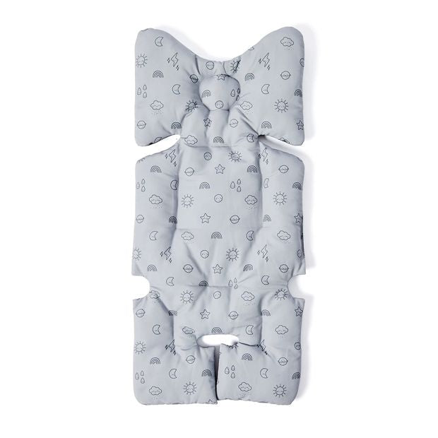 Product DetailsPram not includedDimensions/Size: 80cm (L) x 37cm (W)Colour: GreyFeaturesSky printThick padding for extra comfortUniversal - fits most prams or strollersMachine washableReusable storage bag