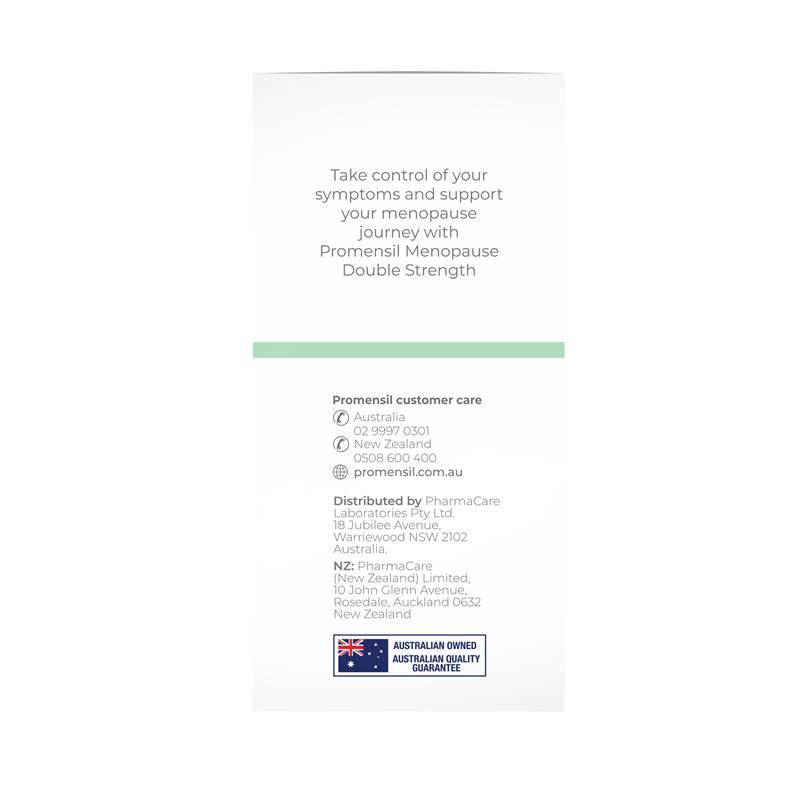General Information Promensil MENOPAUSE DOUBLE STRENGTH contains a natural standardised Red clover isoflavone which can help relieve menopausal symptoms such as hot flushes, night sweats, mild anxiety & moodiness in postmenopausal women. What is Promensil MENOPAUSE DOUBLE STRENGTH for? Helps support healthy emotional balance and general health and wellbeing in postmenopausal women Helps relieve menopausal symptoms, such as hot flushes, night sweats, mild anxiety & moodiness in post-menopausal women. Who is Promensil MENOPAUSE DOUBLE STRENGTH for? For postmenopausal women experiencing menopausal symptoms. Promensil is a supplement formulated with natural standardised red clover isoflavones to help maintain general wellbeing for women during postmenopause. When should I take Promensil MENOPAUSE DOUBLE STRENGTH? For the relief of menopausal symptoms, such as hot flushes, night sweats, mild anxiety & moodiness in postmenopausal women. Why should I take Promensil MENOPAUSE DOUBLE STRENGTH? Promensil Menopause Double Strength contains 80 mg of Red Clover isoflavones for your daily dose of Promensil in one convenient tablet. Promensil Double Strength helps relieve menopausal symptoms such as night sweats, hot flushes, mild anxiety & moodiness in postmenopausal women. Get the relief you need and start enjoying life with Promensil. Size: 60 Tablets