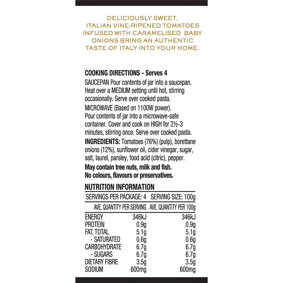 Providore Vine Ripened Tomato Pasta Sauce With Caramelised Onion 400g