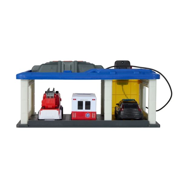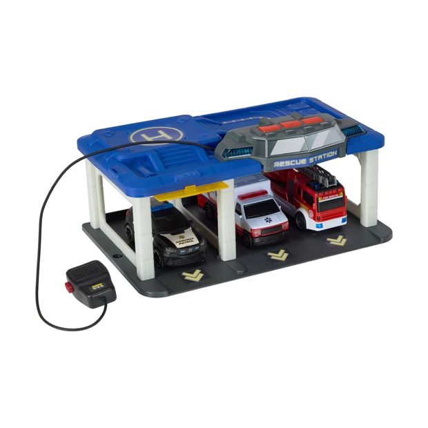Product DetailsIncludes 3 vehicles, a working speaker and a sirenSuitable for ages: 3+ yearsDimensions/Size: 32.8cm (L) x 15.2cm (H) x 22cm (W)Battery information: Requires 2 x 1.5V AA batteries (included for demonstration only)Product weight: 1.11kgsFeaturesLights and soundsWarning: Choking Hazard. Small parts.