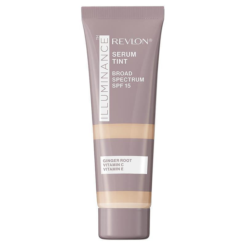 General Information Makeup that actually improves skin. Revlon Illuminance™ Serum Tint provides light coverage to instantly and visibly enhance your complexion and even skin tone over time-with results in 4 to 8 weeks. Infused with skincare ingredients: Ginger Root Extract + Vitamin C + Vitamin E to leave skin hydrated all day. Makeup that actually improves skin. Revlon Illuminance™ Serum Tint provides light coverage to instantly and visibly enhance your complexion, create a natural, healthy-looking glow and even skin tone over time. Visibly reduces dark spots, with results in 4 to 8 weeks. Infused with skincare ingredients, including Ginger Root Extract + Vitamin C + Vitamin E + Triple Hyaluronic Acid to leave skin hydrated all day. Plus, SPF 15 protects skin from UV rays. Lightweight to buildable shades deliver a satin finish. Size: 0.94 Fl. Oz. / 28mL