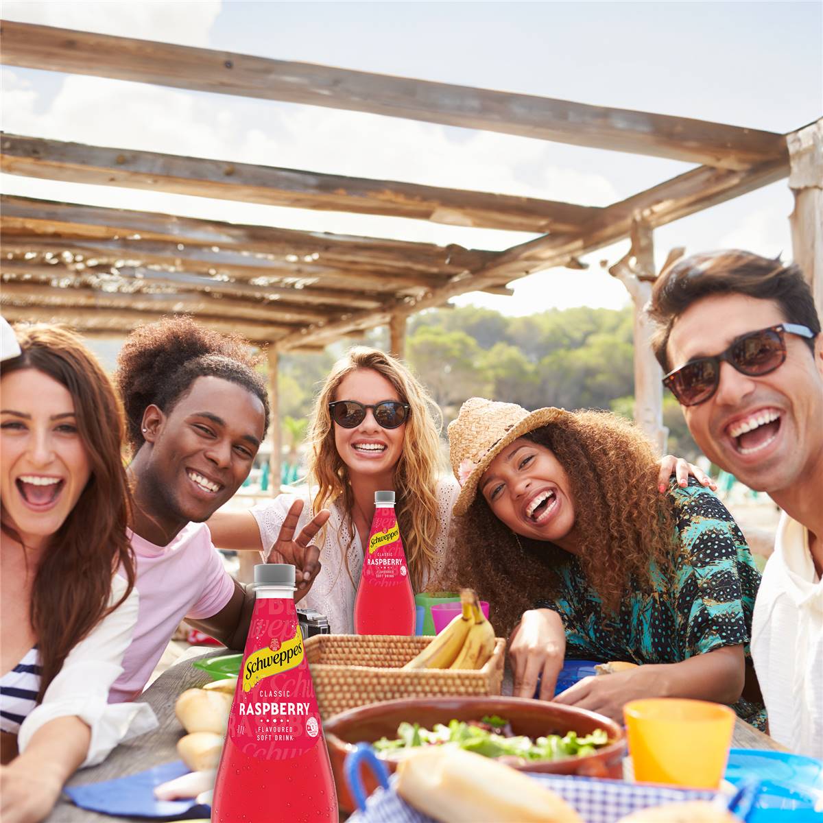 Indulge in the bold and flavourful taste of Schweppes Traditionals Raspberry - perfect for any occasion!Indulge in the tantalizing taste of the Schweppes Traditionals Raspberry! This iconic drink boasts a bold and striking red hue that's sure to draw attention. And with its equally bold and flavourful raspberry taste, it's no wonder why it's one of our most popular drinks! Effervescence meets sweetness in this delightful fizzy drink, making it an absolute treat for your taste buds. Its vibrant colours make it the perfect drink to add some excitement to your summer. You can enjoy it on its own or add it to your favourite cocktail as a mixer for an extra burst of raspberry flavour. The Schweppes Traditionals Raspberry comes in a 1.1L bottle, perfect to serve at parties or to enjoy with friends or family. This drink is perfect for any occasion, whether you want to cool down on a hot day or make a refreshing cocktail. What's not to love about the Schweppes Traditionals Raspberry? It's a classic drink that packs a punch - bold in both appearance and flavour. Plus, with over 800 characters of mouth-watering description, what more do you need to know? Treat yourself to a Schweppes Traditionals Raspberry today - you won't be disappointed!Refreshing thirst quencher.Sweet raspberry taste is a fan favourite.Perfect for refreshing cocktails or standalone drinks.Suitable for sharing with family and friends.Classic and bold flavour.