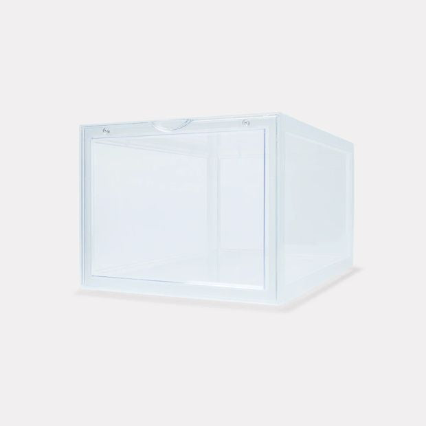 Product DetailsAccessories not includedDimensions/Size: Product dimensions: 22cm (H) x 27.7cm (W) x 37cm (D)Box dimensions: 7.5cm (L) x 37cm (H) x 27.5cm (W)Maximum weight capacity: 1kgMaterial: Polypropylene (PP) and polystyrene (PS)Assembly: Some assembly requiredEasy to assembleColour: ClearFeaturesDrop down opening for easy accessVentilation holes to keep shoes freshMagnetic closureStackableNo tools requiredAdditional InformationInstruction Manual