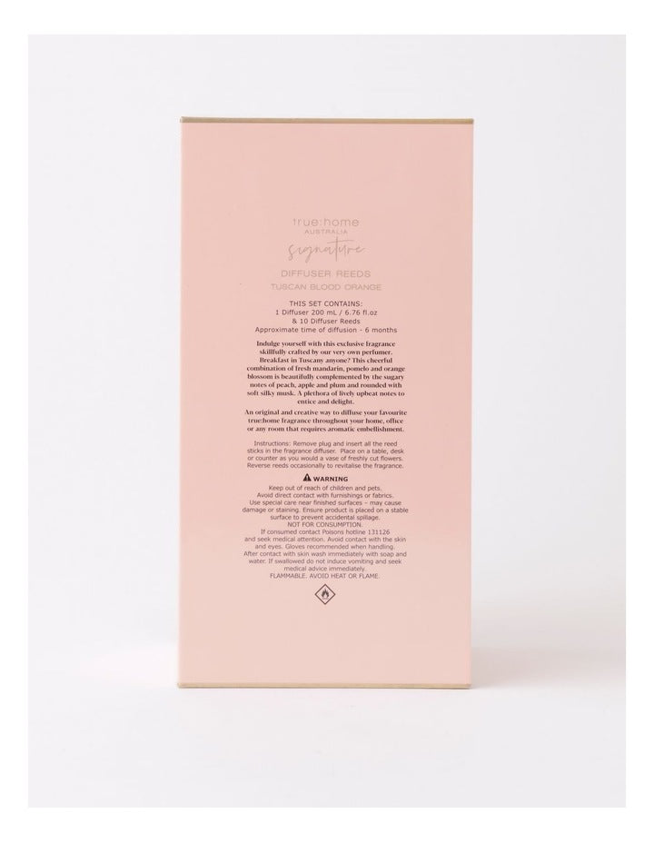 The Tuscan Blood Orange Signature Diffuser offers a continuous, flame-free fragrance experience for any living space. Its scent profile is centered on the vibrant and complex aroma of blood orange, balancing sweet, juicy notes with a subtle tartness to create an uplifting and energizing atmosphere. The aromatic oil is gradually diffused through natural reeds, providing a consistent and understated ambiance.