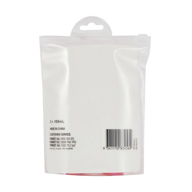 Product Details Capacity: 100ml (Each)2 pack Dimensions/Size: 19.7cm (H) x 14cm (W) x 4.6cm (D) FeaturesFor storing liquids and lotions