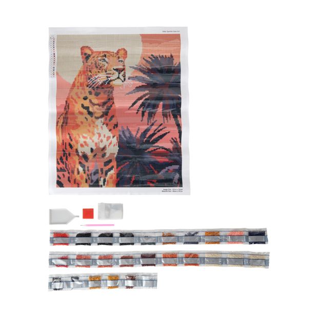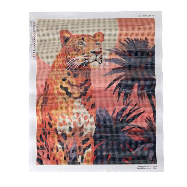 Product DetailsIncludes 1 x canvas, coloured gems and tool kitDimensions/Size:Pack size: 50.5cm (H) x 9.8cm (W) x 3.1cm (D)Canvas: 50cm (H) x 40cm (W)FeaturesLeopard designFor DIY craft