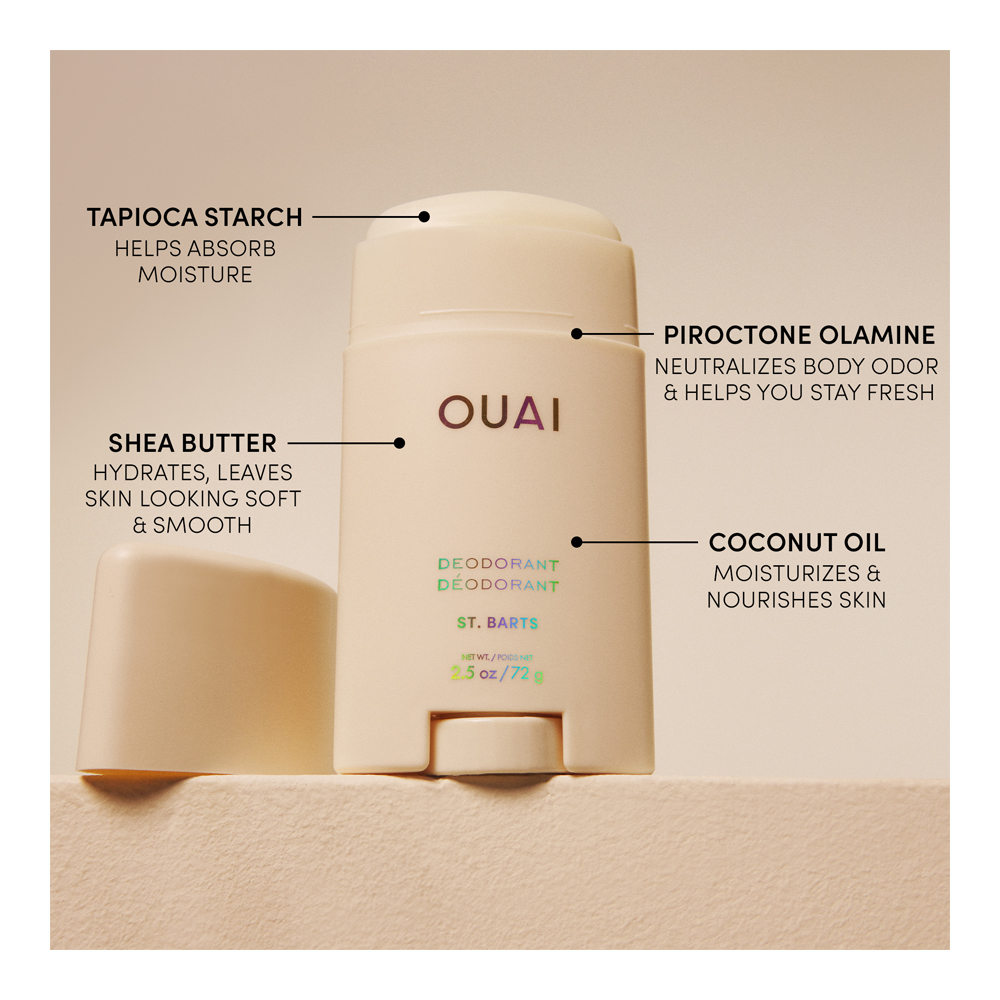 Twist up 3x. Swipe once onto clean, dry skin. A little goes a long OUAI. Let it dry before getting dressed to avoid transfer. Twist down 3x before replacing the cap. Reapply as needed—especially post-workout or on hot days. Use daily for best results. Like skincare, consistency is key. Wearing antiperspirant? Layer OUAI DEODORANT on top for an extra hit of fragrance + freshness.