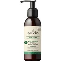 General Information Sukin Signature Mattifying Facial Moisturiser contains Rice Powder to absorb excess oil, leaving a silky no-shine finish on the skin. Elevate your daily routine with Sukin's Mattifying Facial Moisturiser. Shine-Free Finish: Our formula, enriched with Rice Powder, ensures excess oil is absorbed, leaving your skin with a beautiful matte finish. Daily Hydration: Native Raspberry, Cocoa Butter, Cucumber Extract, and Aloe Vera work together to keep your skin moisturized and refreshed throughout the day. Silky Smooth Texture: Experience the luxury of smooth, silky skin as you apply this moisturizer, perfect for creating a flawless canvas for makeup or embracing a natural look. Easy Application: Gently massage into your face, neck, and décolletage after cleansing for a hassle-free and enjoyable part of your daily skincare routine. Suitable for Daily Use: Embrace the benefits daily, as our Mattifying Facial Moisturiser is designed to complement your routine and maintain a balanced, shine-free complexion. Beauty that doesn't cost the Earth. Suitable For: All Skin Types Size: 125ml Skin Type: Combination KEY FEATURES • Enriched with rice powder, native raspberry & cucumber extract to promote balanced and mattified skin. • Paraben Free • Normal to Oily Skin Types • Shine Free Finish