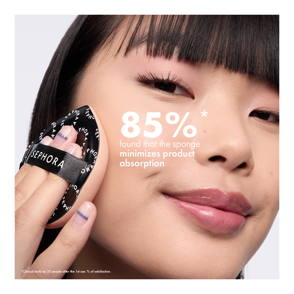 This sponge can be used dry or damp to blend in all types of foundation—liquid, cream or powder.