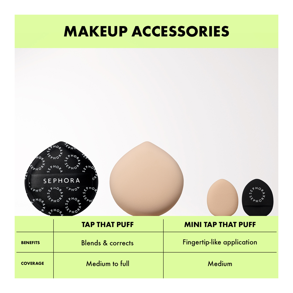 The Tap That Puff face sponge is compatible with all textures of foundation, whether liquid, cream or powder. It can be used dry for high coverage or slightly moistened (with a setting spray) for a lighter effect.