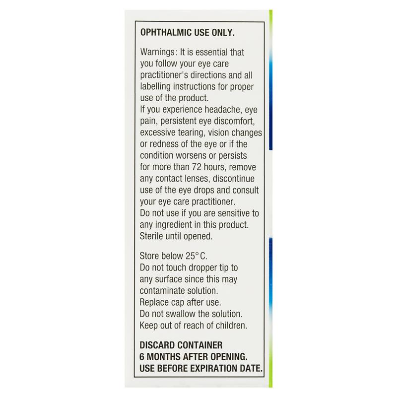 Warnings OPHTHALMIC USE ONLY. It is essential that you follow your eye care practitioner's directions and all labelling instructions for proper use of the product. If you experience headache, eye pain, persistent eye discomfort, excessive tearing, vision changes, or redness of the eye or if the condition worsens or persists for more than 72 hours, remove any contact lenses, discontinue use of the eye drops and consult your eye care practitioner as the problem could become more serious. Be careful driving or operating machinery until you know how TEARS NATURALE™ Lubricating Eye Drops affect you and your vision. As with any eye medicine, temporary blurred vision or other visual disturbances may affect the ability to drive or use machines. If blurred occurs at instill tion, wait until your vision is clear before driving or using machinery.