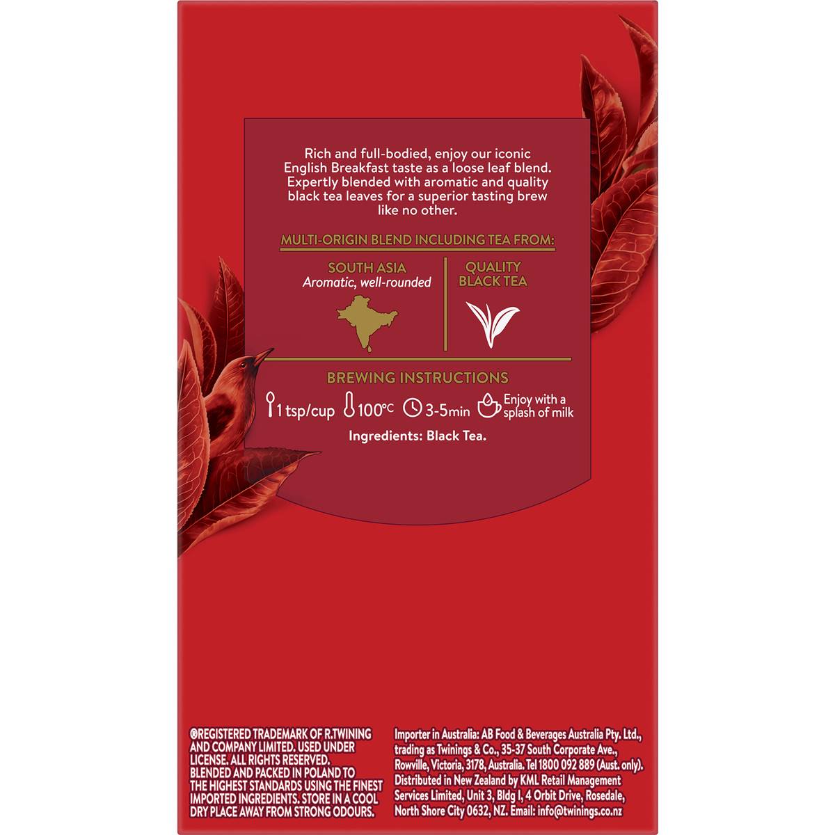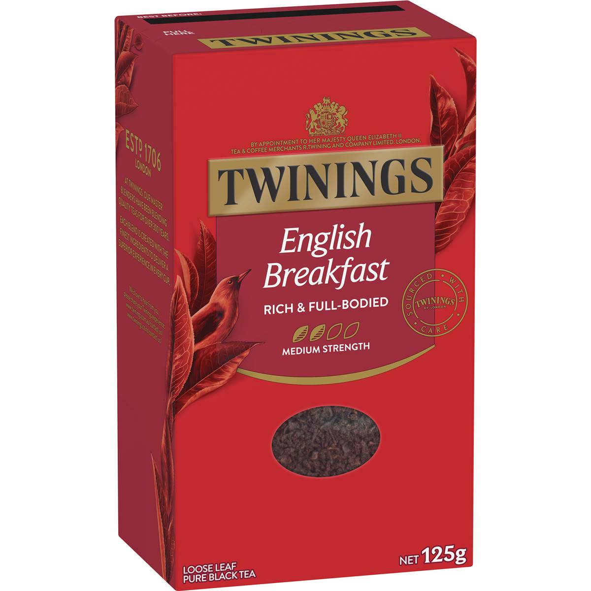Twinings Tea Bag Medium Strength English Breakfast is rich & full-bodied. Rich and full-bodied, enjoy our iconic English Breakfast taste as a loos leaf blend. Expertly blended with aromatic and quality black tea leaves for a superior tasting brew like no other. Multi-origin blend including tea from: South AsiaAromatic, well-roundedQuality black teaEstd. 1706 LondonAt Twinings, our master blenders have been blending quality teas for over 300 years. Each blend is created with the finest ingredients to deliver a superior experience in every cup.