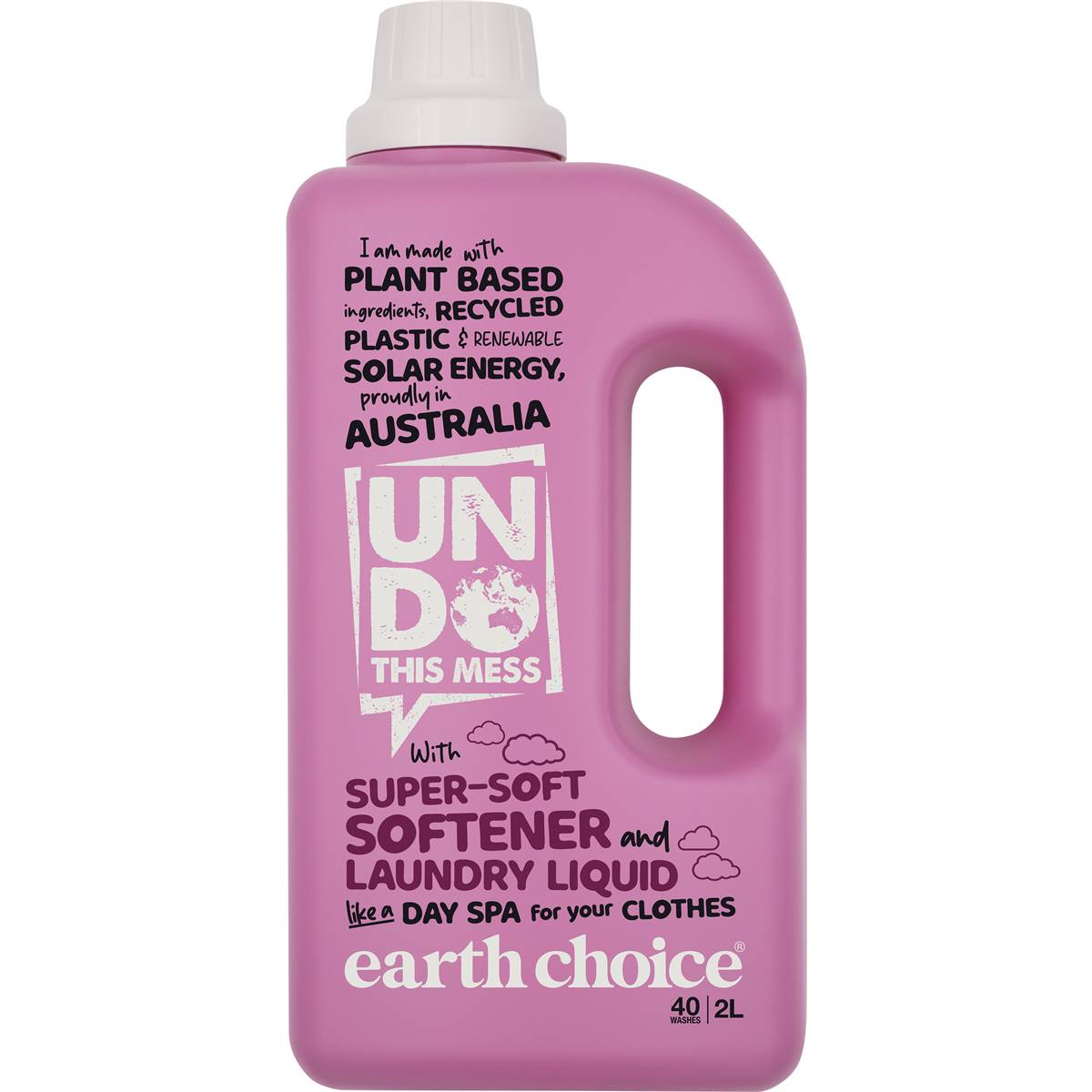 Undo This Mess Super-Soft Softener and Laundry Liquid. Like a day spa for your clothes. Super-Soft Softener - 2 in 1 is twice the fun! Clean & softens for warm & fuzzy feels.It's like laundry detergent but softer. Kittens, puppies, butter, Super Soft Softener. Oh, sorry, I thought asked what's the softest thing in the world. 2-in-1 is twice the fun, which is why this laundry liquid will both CLEAN and SOFTEN your clothes. So ditch the fabric softener and go Super Soft. I am made with plant based ingredients, recycled plastic & renewable solar energy, proudly in Australia. We use powerful & biodegradable cleaning chemicals made with renewable sources, instead of fossil fuels.Built In Fabric SoftenerLifts StainsHoney Blossom & Black Orchid FragranceSuitable For Front & Top LoadersPlant-Based FormulaRecycled & Recyclable BottleMade with Renewable EnergyCruelty Free & Vegan