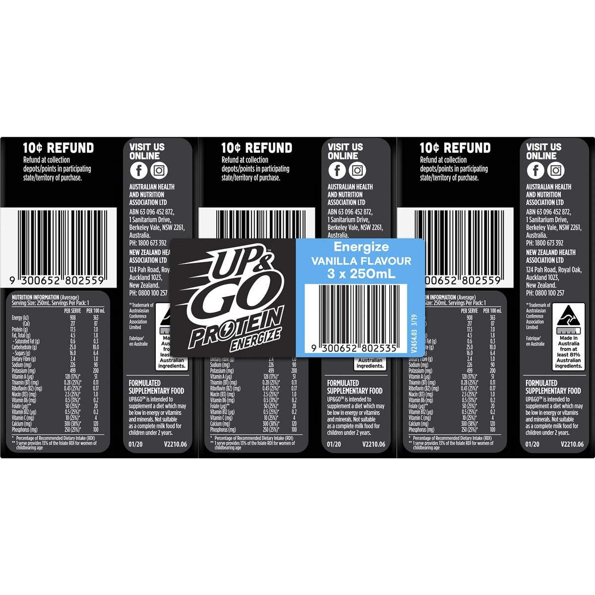 Up&Go Protein Energize Liquid Breakfast Vanilla 250mL x 3 pack