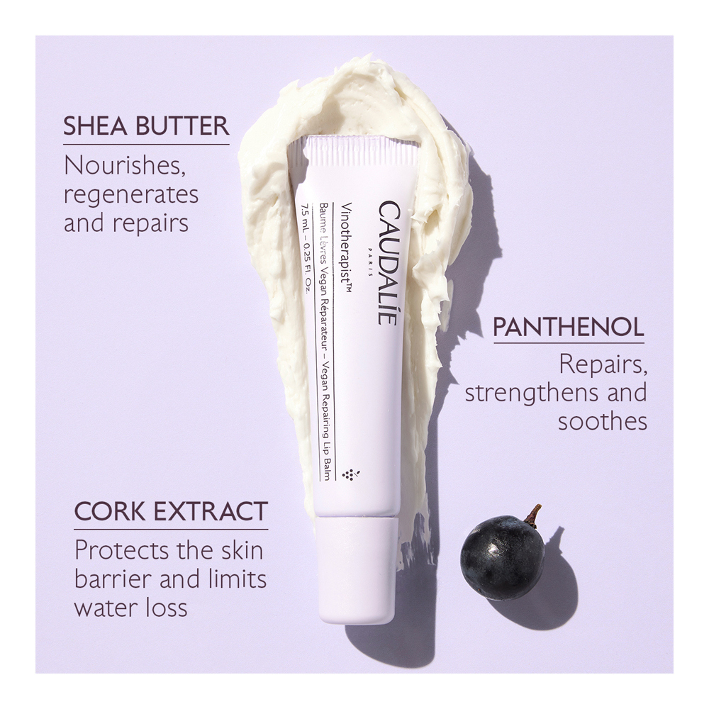 This vegan repairing lip balm soothes, repairs, and provides intense protection for dry, chapped lips.